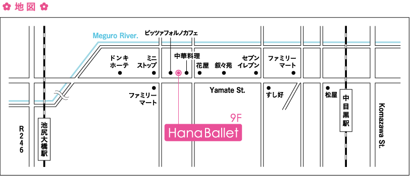 ◎東急東横線『中目黒』駅 徒歩7分 ◎田園都市線『池尻大橋』駅 東口より徒歩10分 ◎東急バス 『東山1丁目』バス停より0分